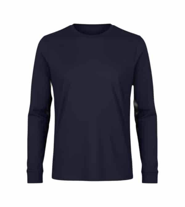 Remera cuello a la base azul, manga larga, con reflectivo.-