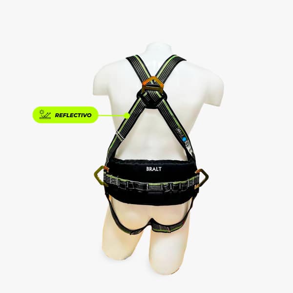 Arnés de seguridad de 4 argollas con faja lumbar y porta herramientas, modelo BR-320, marca BRALT