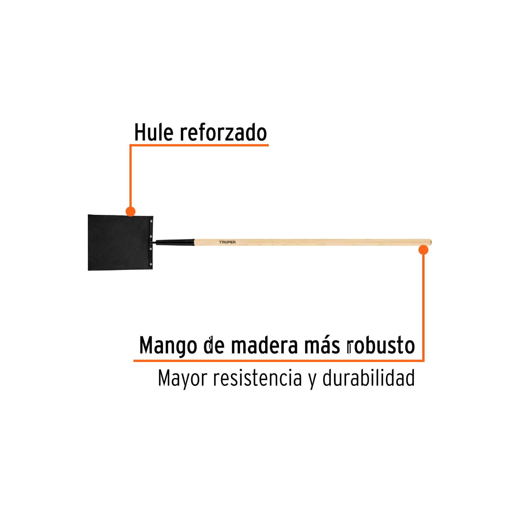 Su mango, de 1.80m, tiene un diseño ergonómico y antideslizante que le otorga comodidad, mejora el agarre y reduce vibraciones. Su cabo tubular es hueco y está constituído por fibra de vidrio reforzado con resina y polietileno de alta densidad.