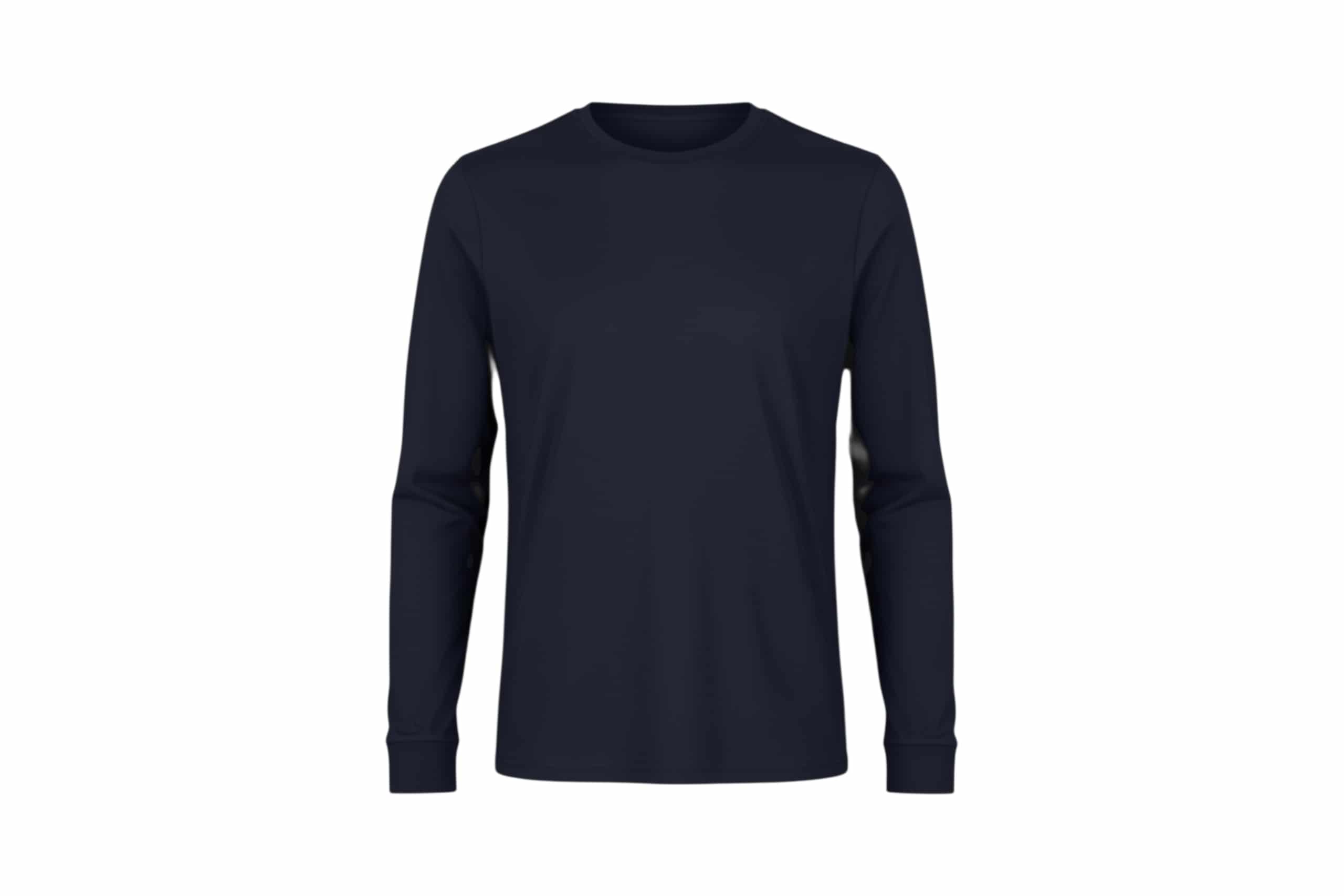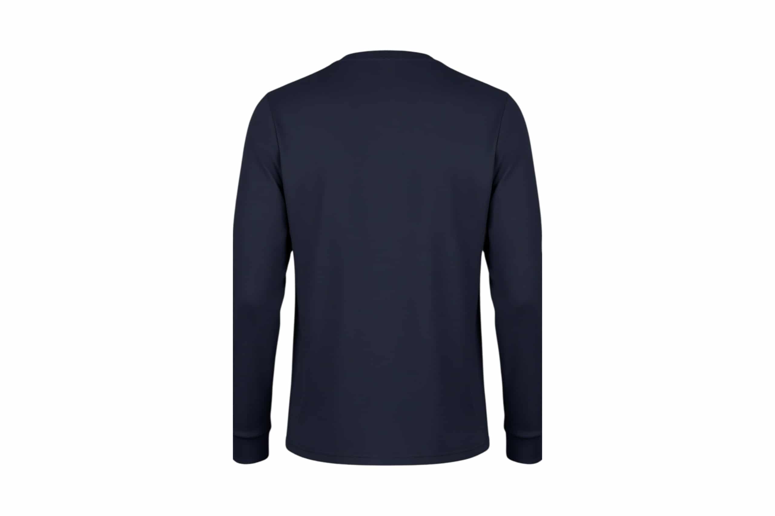 Remera cuello a la base azul, manga larga.-